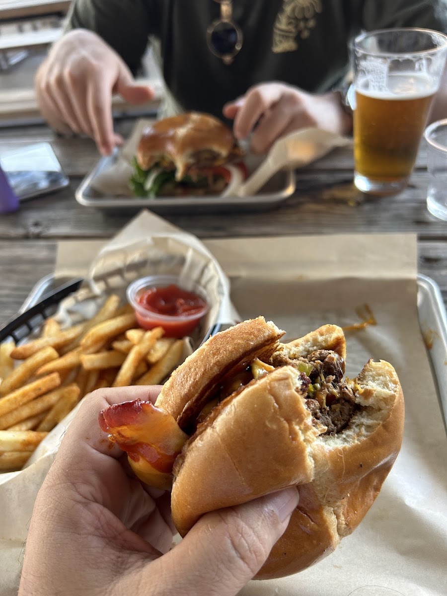 The brewery was clean, staff were welcoming and friendly. Very knowledgeable about the beer and what goes best with your meal choice. I had the Hitching Post beer and The Porch burger. Both were very and paired well with each other. Visiting from out of town and was very satisfied and enjoyed my meal!